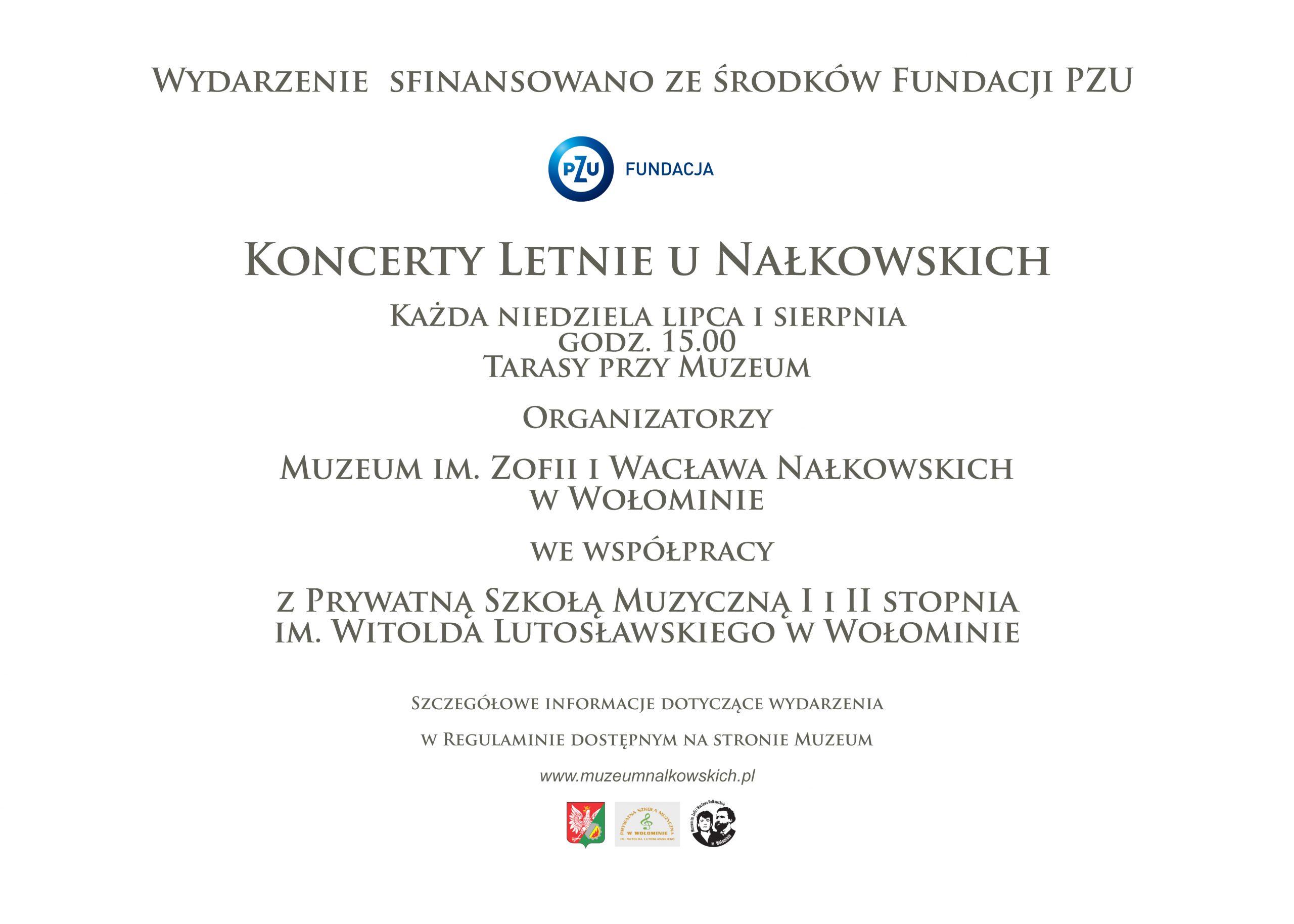 Koncerty letnie u Nałkowskich odbywają się w każdą niedzielę lipca i sierpnia w „Domu nad Łąkami” o godz. 15.00.