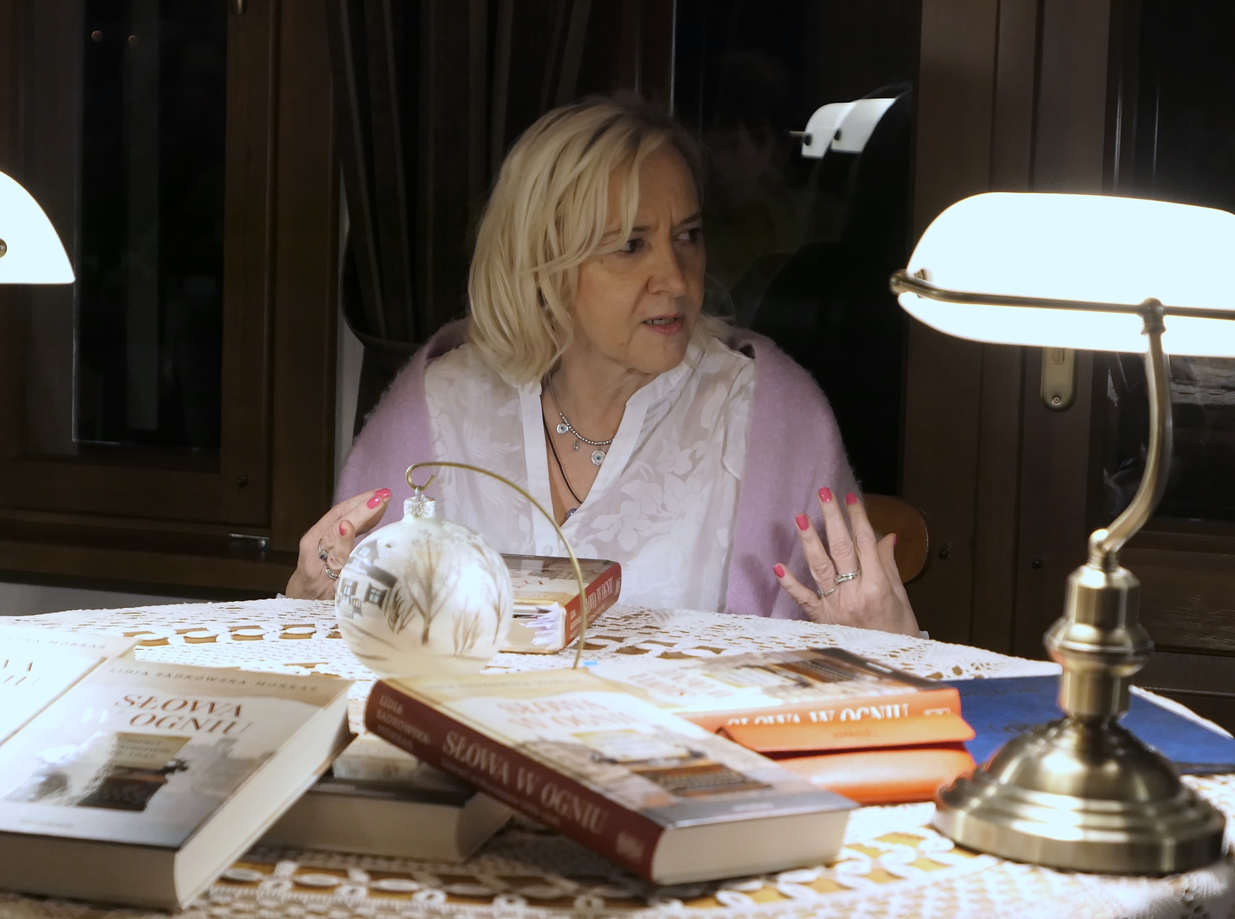 Na trzy dni przed 70. rocznicą śmierci Zofii Nałkowskiej, 14 grudnia, w jej letnim domu miało miejsce spotkanie z Lidią Sadkowską-Mokkas, autorką książki „Słowa w ogniu. Literaci w Warszawie 1939-1945”. Najnowsza książka Lidii Sadkowskiej-Mokkas zbiera w jednym miejscu świadectwa życia codziennego ludzi pióra, którym przyszło żyć w mieście przeznaczonym do unicestwienia. Jedną z wiodących bohaterek publikacji jest autorka „Medalionów”, ale na kartach książki znajdziemy również historie pisarzy i poetów o ugruntowanej już przed wojną pozycji jak również tych, których gwiazda wschodziła i zgasła w czasie wojny, i tych, którzy zaczynali pisać w czasie zmierzchu świata a z literaturą związali się już w nowej rzeczywistości.