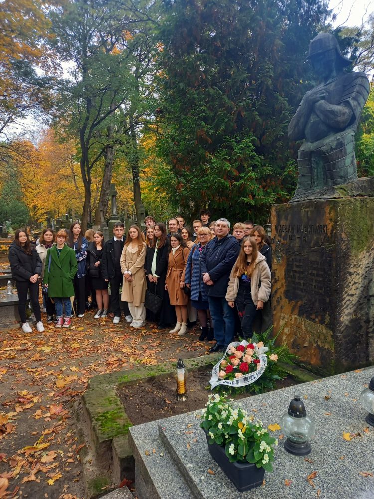Piękna złota jesień zadomowiła się już u nas. To znak, że nadchodzi czas gdy powinniśmy powspominać tych, którzy odeszli. W nadchodzących dniach będziemy częściej jeździć na cmentarze, zapalać światełka na grobach ludzi nam bliskich. Jak co roku pracownicy Muzeum im. Zofii i Wacława Nałkowskich odwiedzili Cmentarze Powązkowskie, by przygotować groby patronów na 1 listopada. W tym razem towarzyszyła nam młodzież z I LO im. Wacława Nałkowskiego w Wołominie z klas 1b i 1h wraz z opiekunami i p. dyr. Jolantą Mosak. Pomimo że aura nie była dla nas przychylna, udało się uporządkować oba groby i zrobić małe spacery po nekropoliach. Nie da się ukryć, że Powązki nawet w deszcz mają jesienią swój niepowtarzalny urok. Czytaj dalej „Wizyta na grobach patronów”