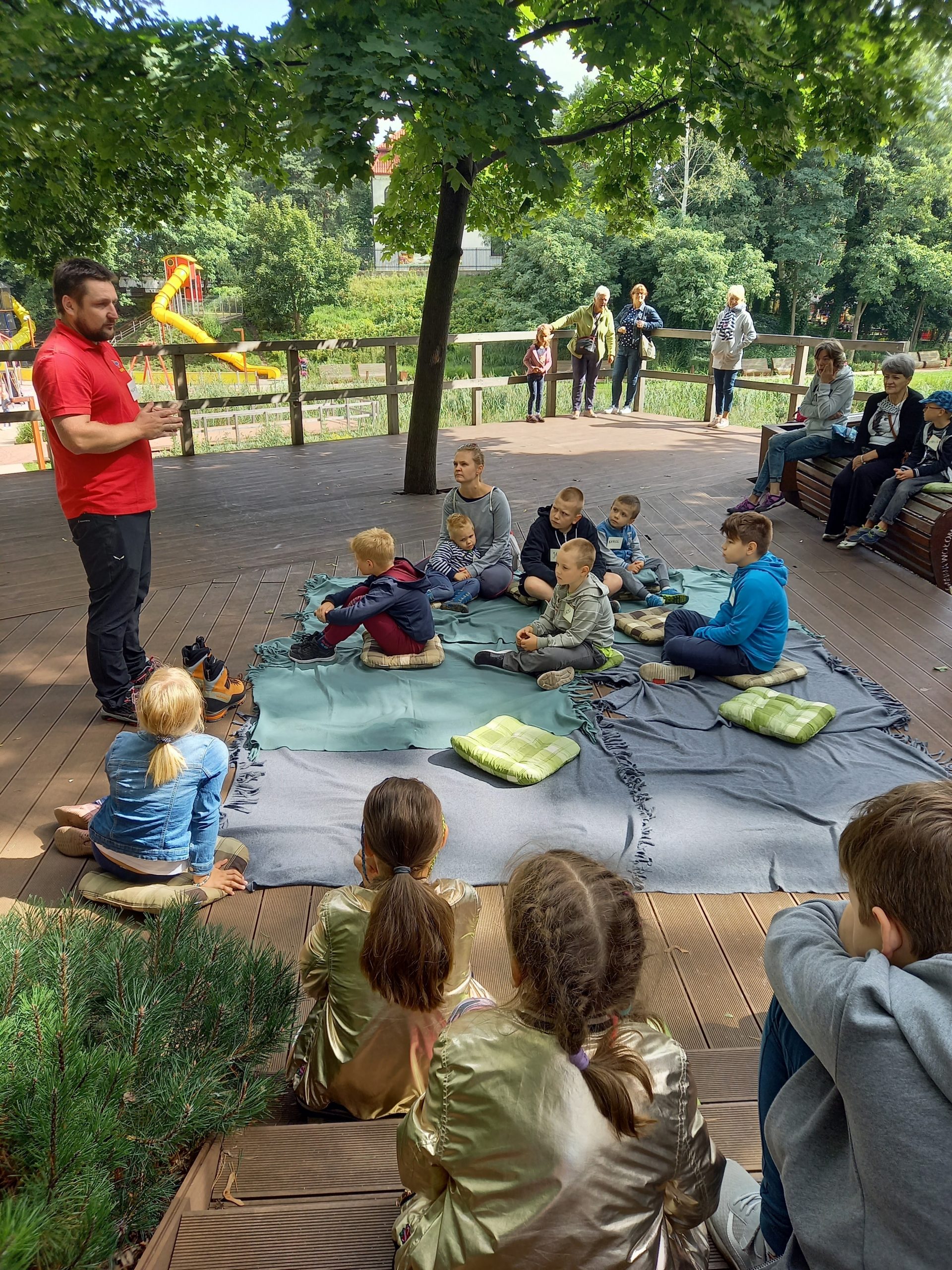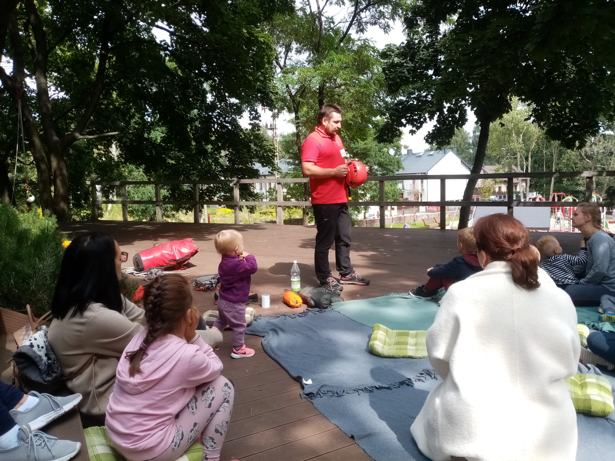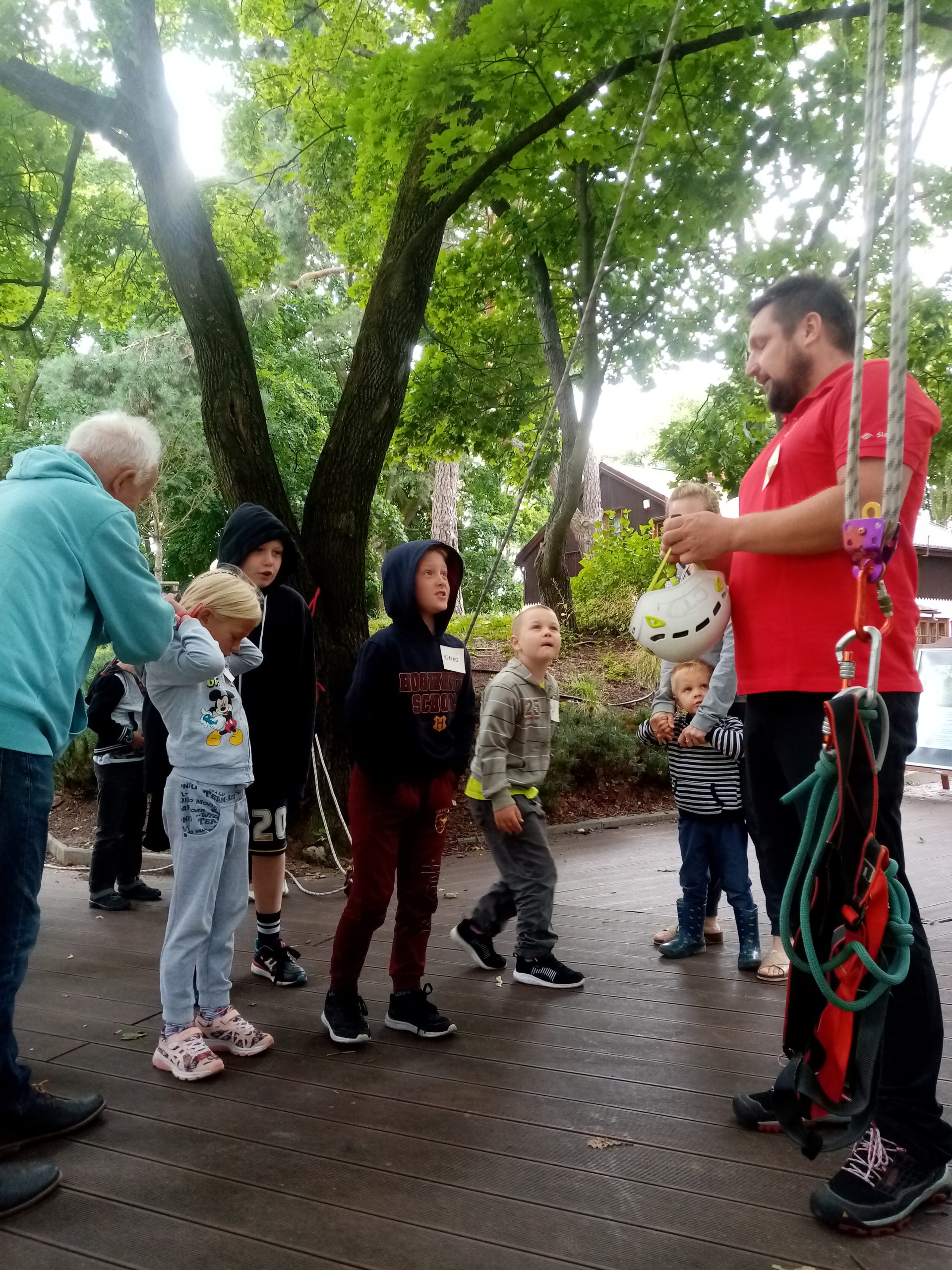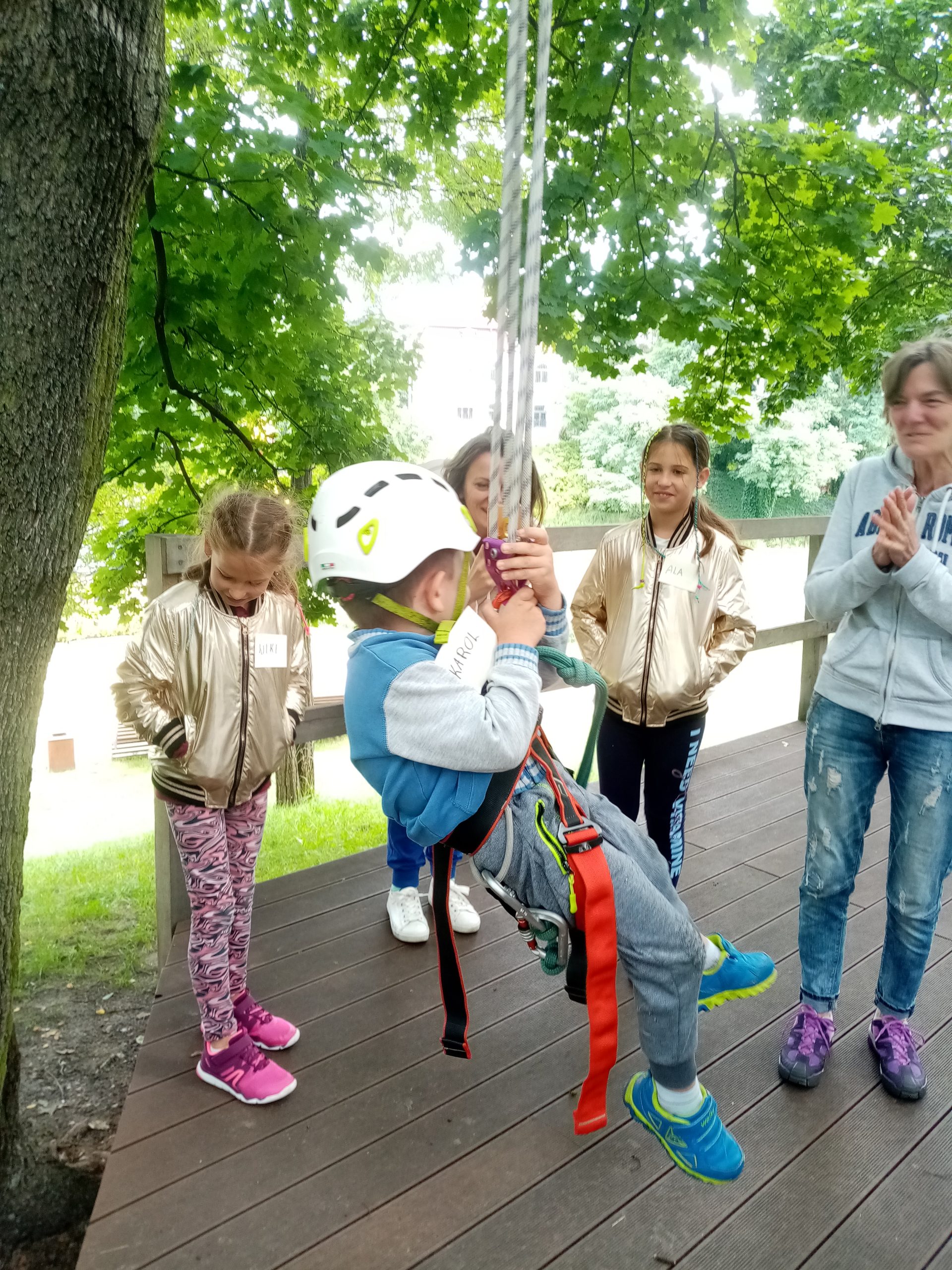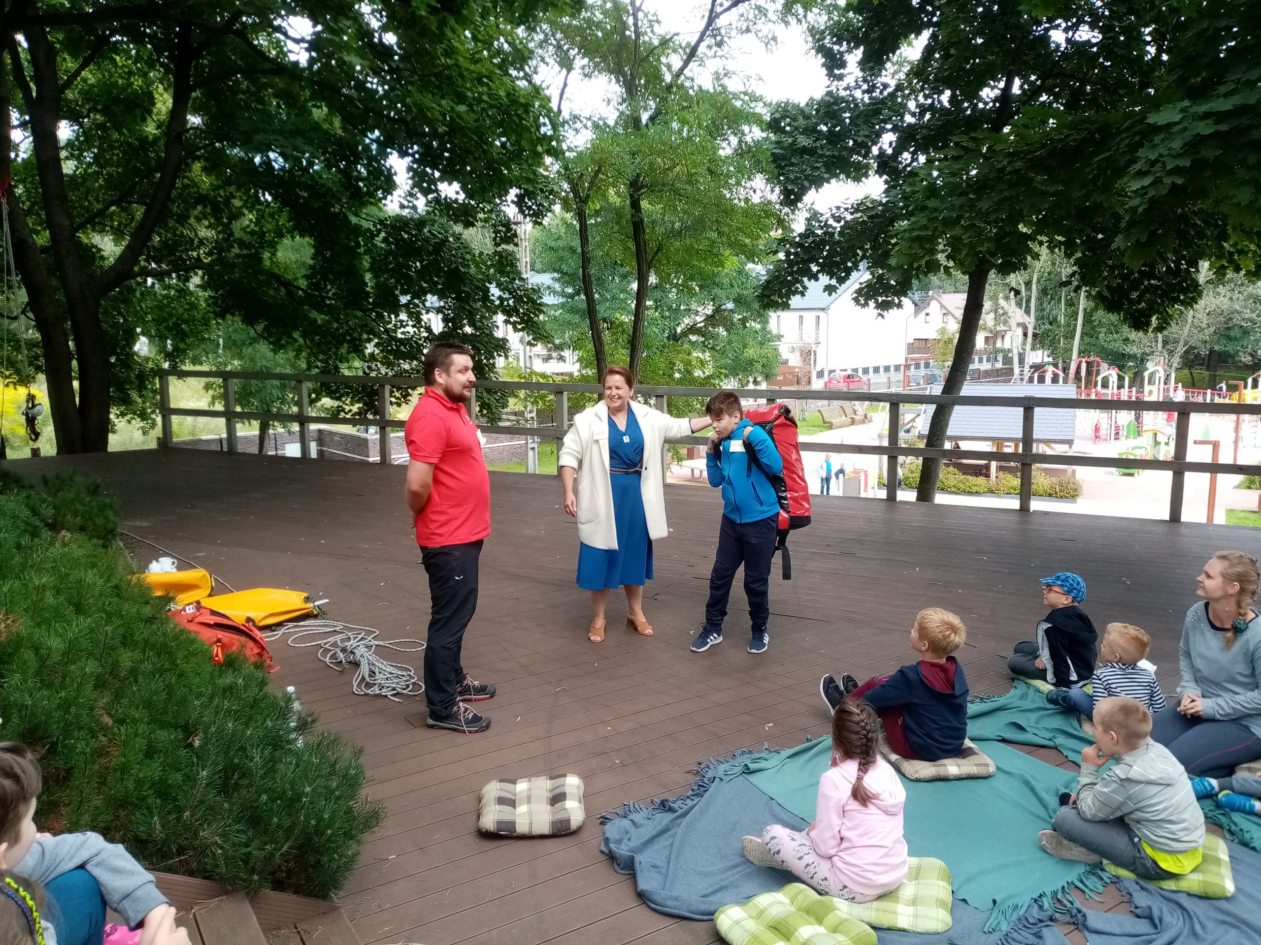 Śmiałkowie mogli spróbować podnieść plecak ratownika górskiego, plecak pana Macieja. Udało się to tylko najsilniejszym! Taki plecak waży aż 20 kg! Po zajęciach teoretycznych przyszedł czas na praktyczne. Każdy na chwilę stawał się ratownikiem i ofiarą wypadku w górach. Zajęcia te, nauczyły nas jak dużą mądrością trzeba się wykazać planując wycieczkę w góry i jak bardzo ciężka, i odpowiedzialna, jest praca ratowników górskich. Od teraz każdy roztropnie będzie wybierać się na zdobywanie szczytów. Dziękujemy panu Maciejowi za wspaniałe zajęcia.