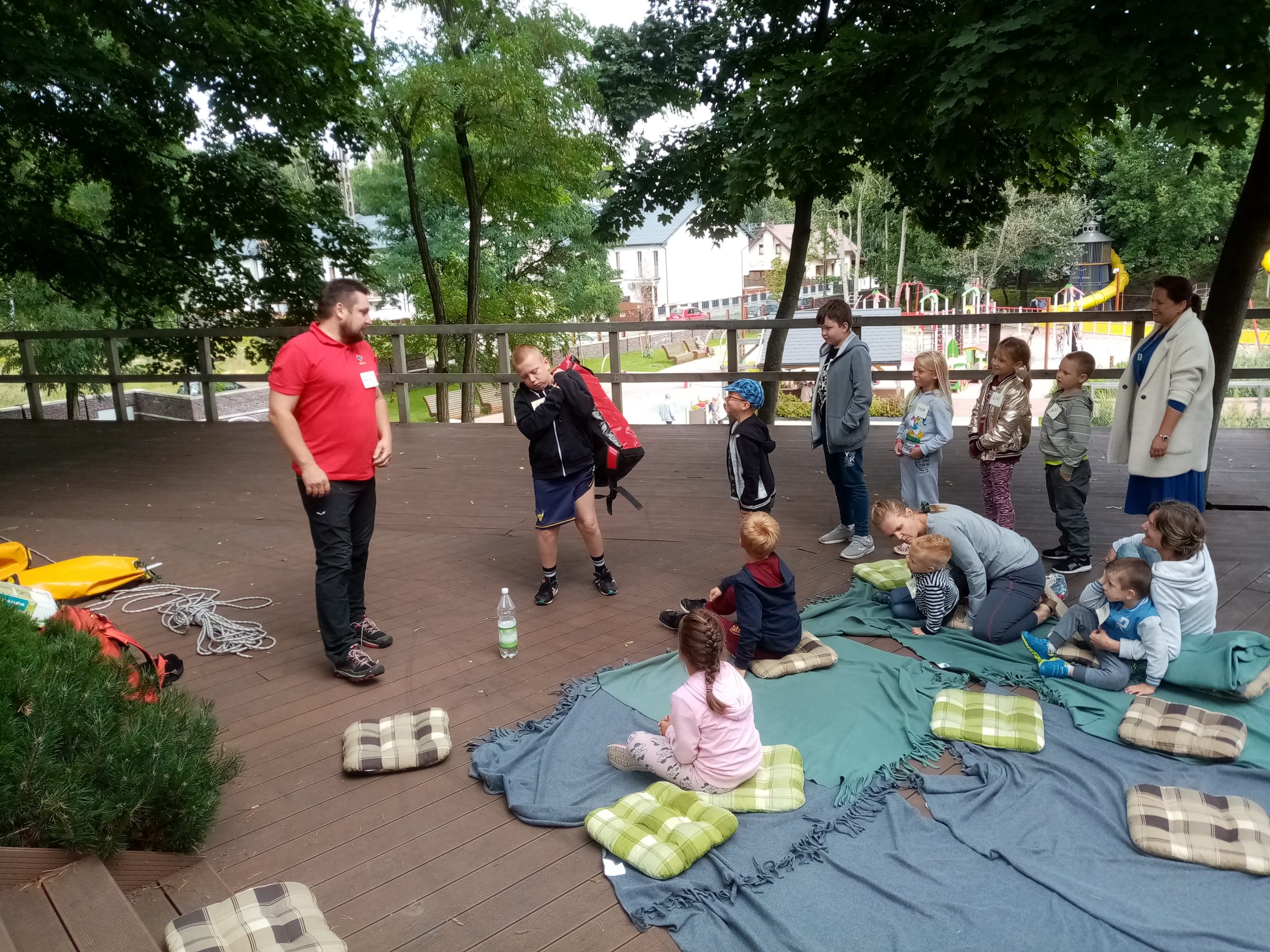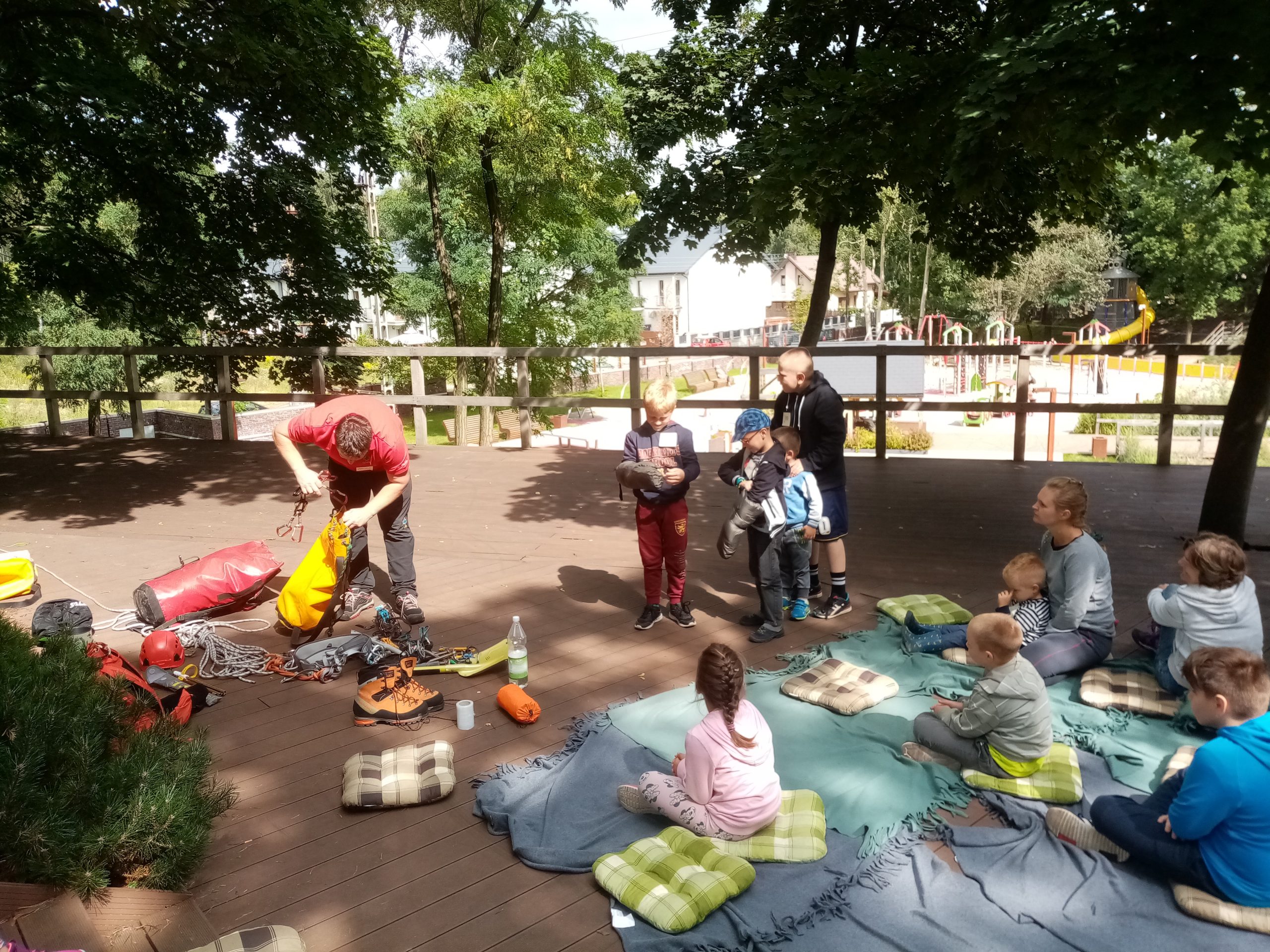 Pan Maciej Ignatowicz, alpinista i ratownik GOPR, przywiózł na spotkanie z dziećmi do „Domu nad Łąkami” bardzo ciężkie plecaki. W czasie trwania zajęć wyciągał z nich kolejne rzeczy i opowiadał do czego służą. Były tam karabinki, raki, czekany, buty, rękawice, liny i wiele innych, których nazwy ciężko zapamiętać – ale wszyscy już wiemy, że są one niezbędne, gdy chcemy iść w wysokie, naprawdę wysokie góry. Pokazał też jakiego sprzętu używa się do ratowania ludzi w górach, np. po zejściu lawiny lub gdy ktoś wpadnie do szczeliny lodowca.