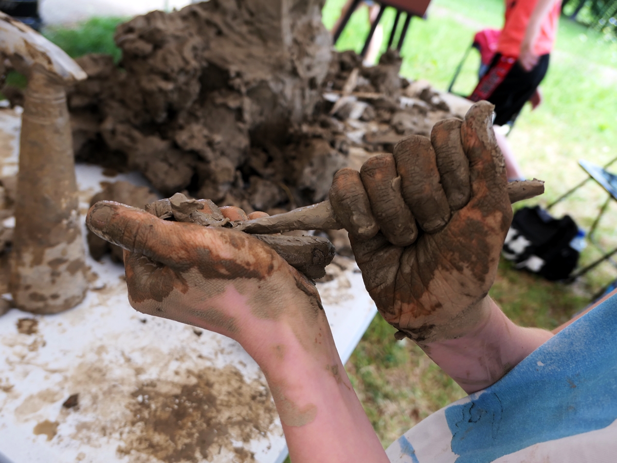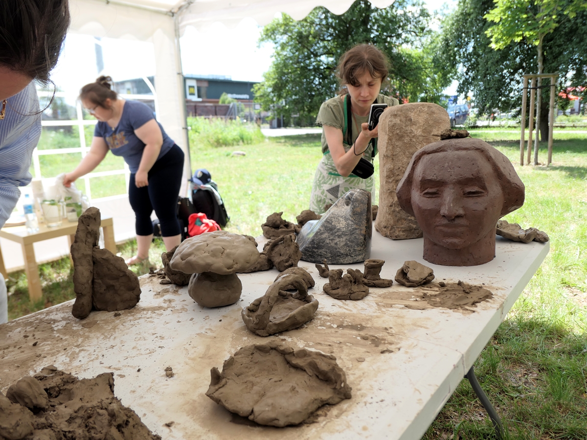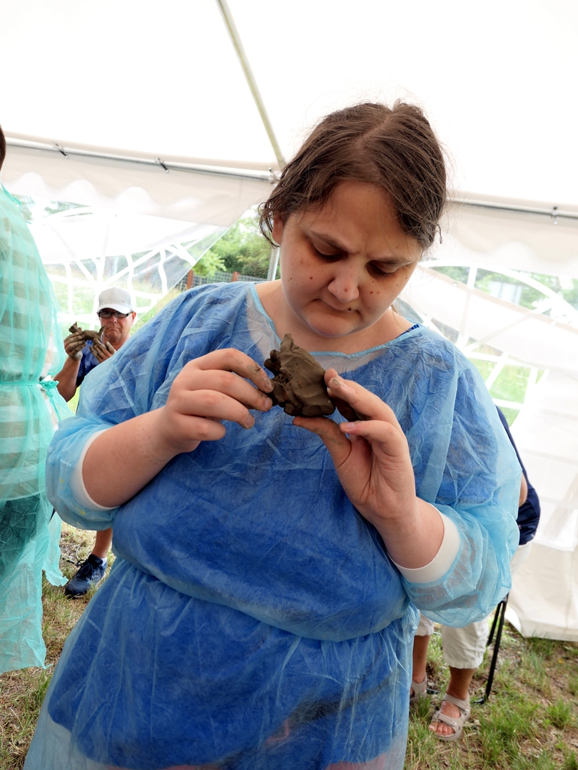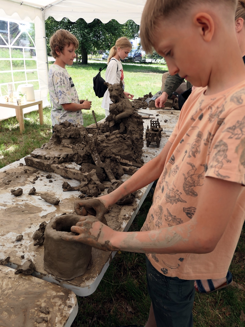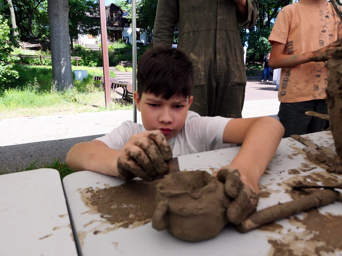 To pytanie nurtowało uczestników warsztatów przed ich rozpoczęciem, ale już w trakcie każdy mógł się przekonać sam, że można i tak, i tak. Jan Jaworski-Brach, artysta-rzeźbiarz prowadzący zajęcia nie tylko opowiedział o pracy w glinie, pokazał też narzędzia używane przez artystów i dał dużo, bardzo dużo gliny by każdy mógł wyrazić się w swojej sztuce. Jaki był efekt? Brudne ręce, świetna zabawa i piękne prace.