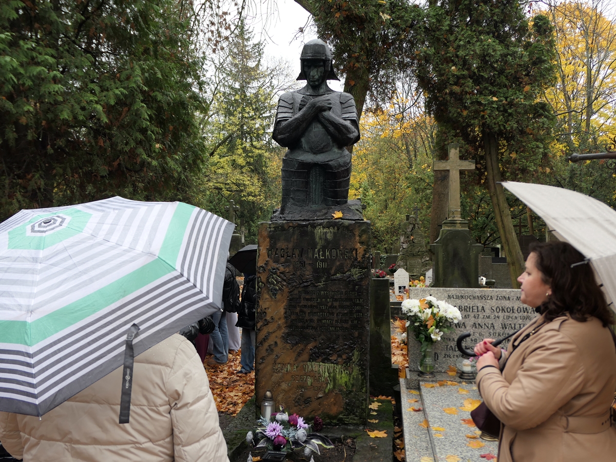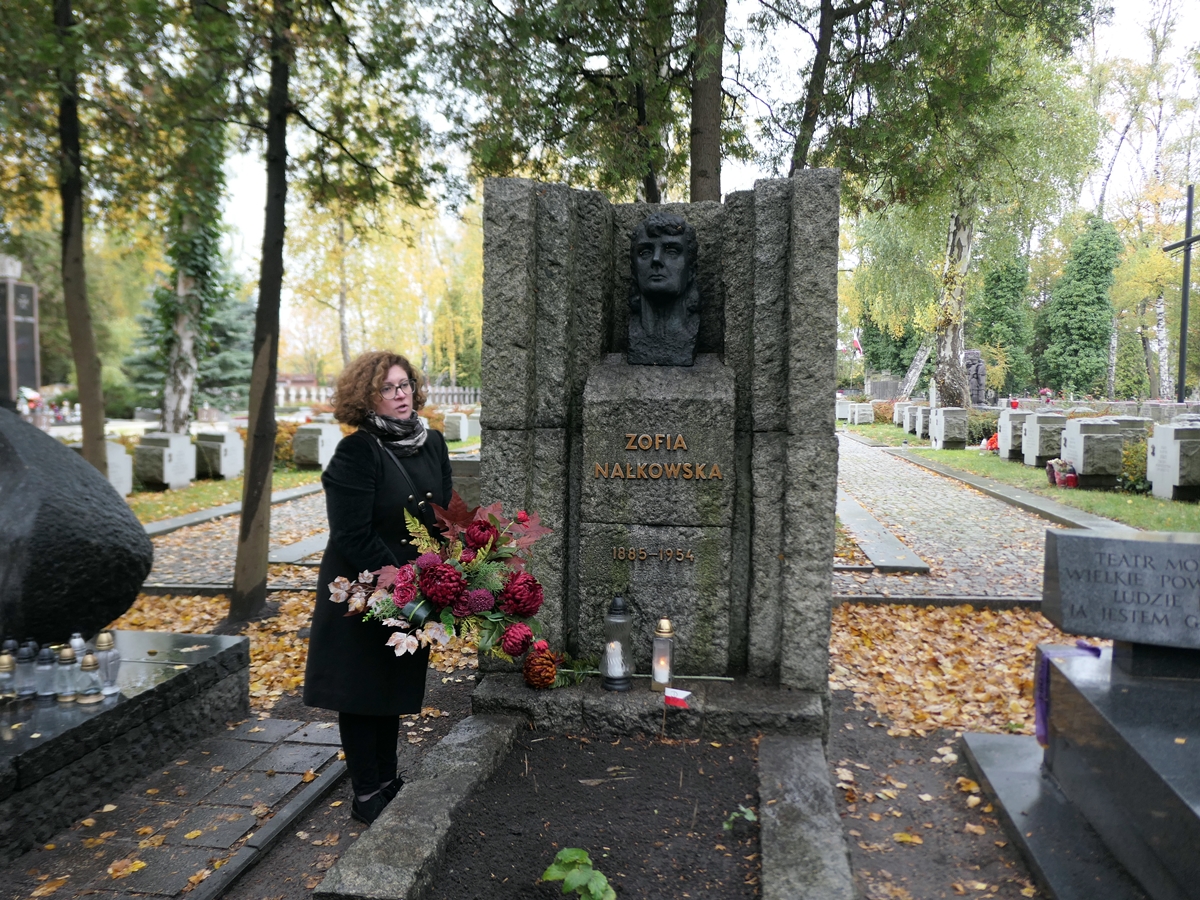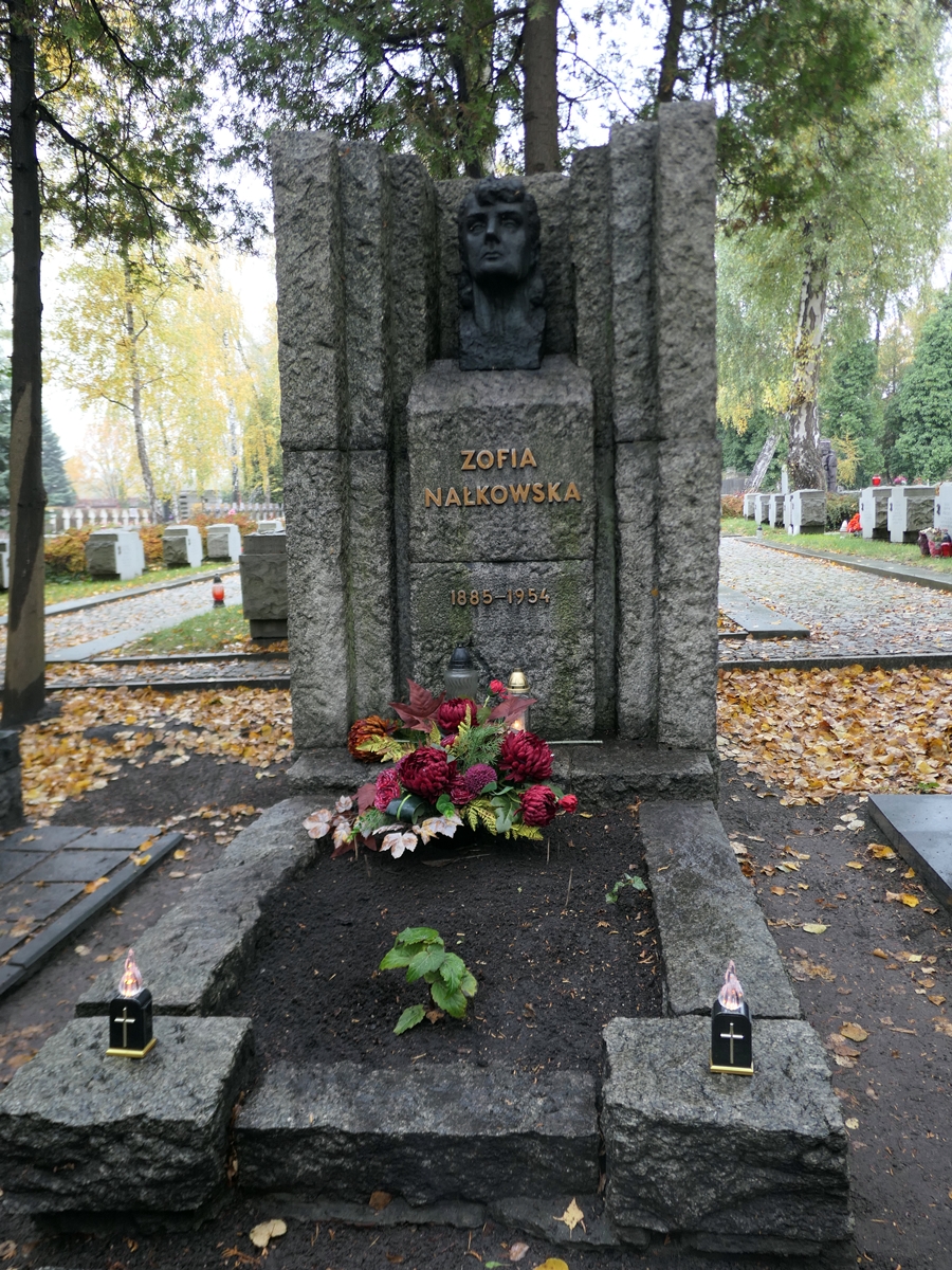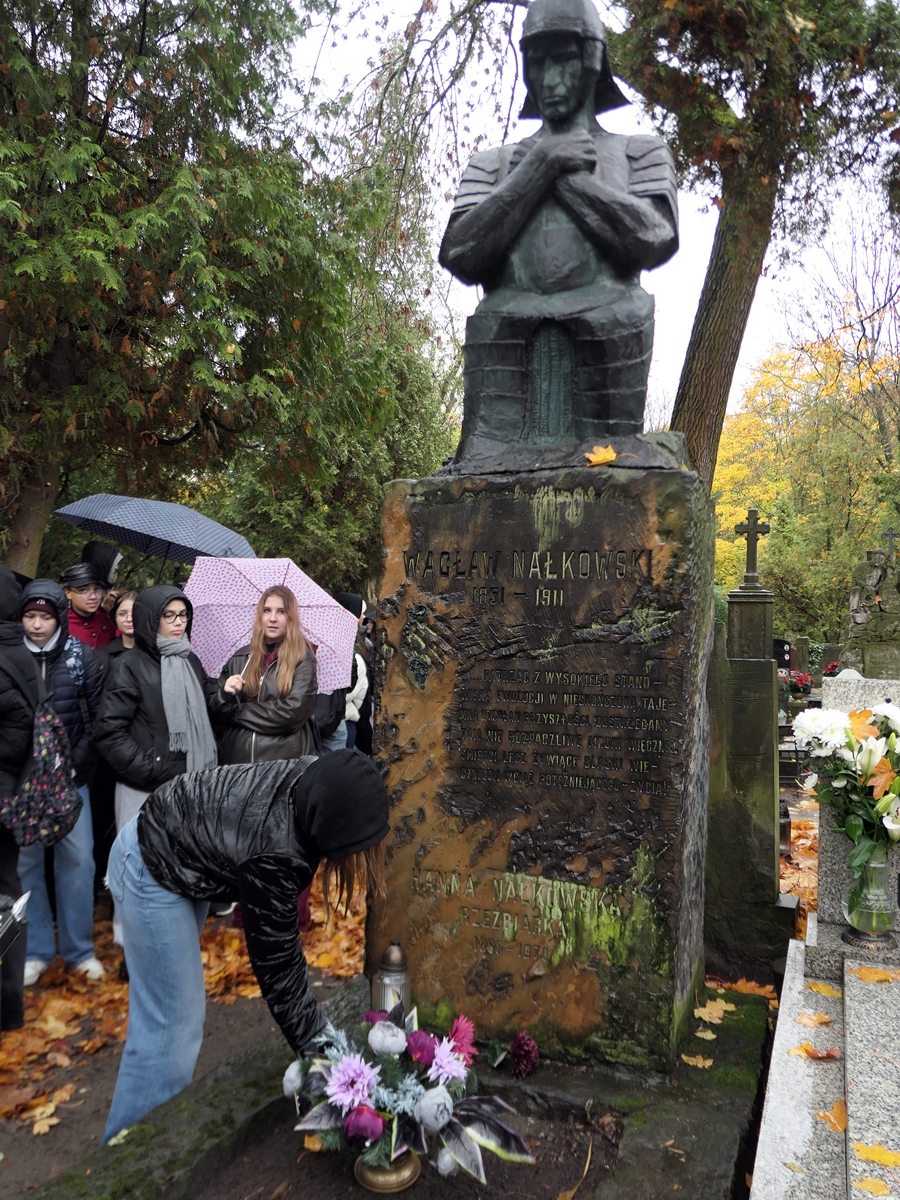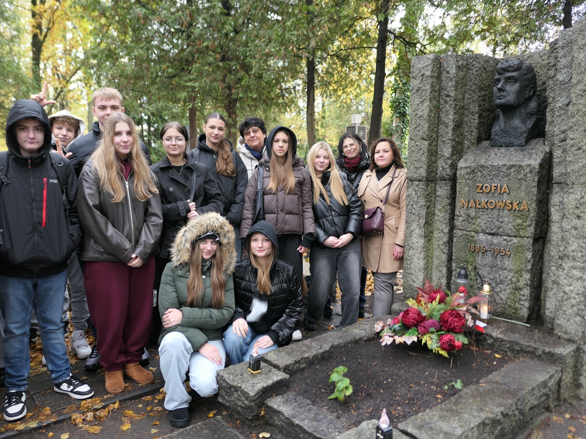 Piękna złota jesień zadomowiła się już u nas. To znak, że nadchodzi czas gdy powinniśmy powspominać tych, którzy odeszli. W nadchodzących dniach będziemy częściej jeździć na cmentarze, zapalać światełka na grobach ludzi nam bliskich. Jak co roku pracownicy Muzeum im. Zofii i Wacława Nałkowskich odwiedzili Cmentarze Powązkowskie, by przygotować groby patronów na 1 listopada. W tym razem towarzyszyła nam młodzież z I LO im. Wacława Nałkowskiego w Wołominie z klas 1b i 1h wraz z opiekunami i p. dyr. Jolantą Mosak. Pomimo że aura nie była dla nas przychylna, udało się uporządkować oba groby i zrobić małe spacery po nekropoliach. Nie da się ukryć, że Powązki nawet w deszcz mają jesienią swój niepowtarzalny urok.